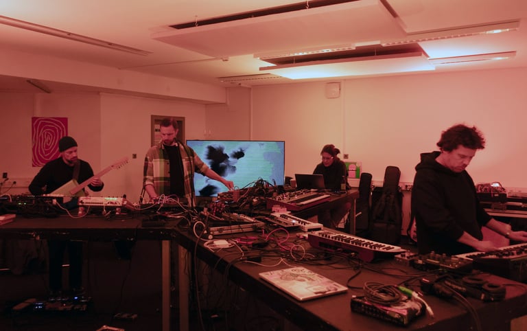 Week-long residency at Alte Feuerwache Mannheim in collaboration with musicians Thilo Eichhorn, Fulgeance, and Ephraim Giepen. Focused on developing improvisational audiovisual performance and exploring experimental methodologies in real-time sound and visual interaction.